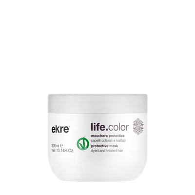 La maschera protettiva chiude il trattamento Ekre per capelli sottoposti a colorazione e decolorazione: la maschera agisce sul capello colorato o trattato, particolarmente sensibile alle aggressioni esterne perchè indebolito dall'azione chimica.